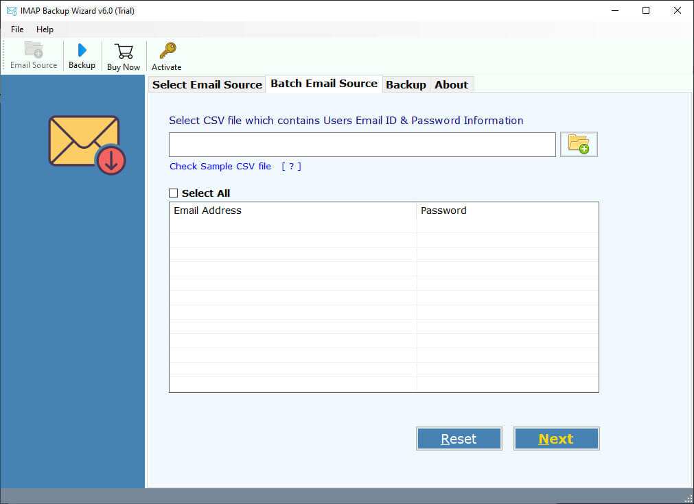 The software allows you an advanced option for business users. One can easily use the batch option for downloading multiple Rogers email accounts at once. For this, users need to create a CSV file and then upload it to the user interface panel.