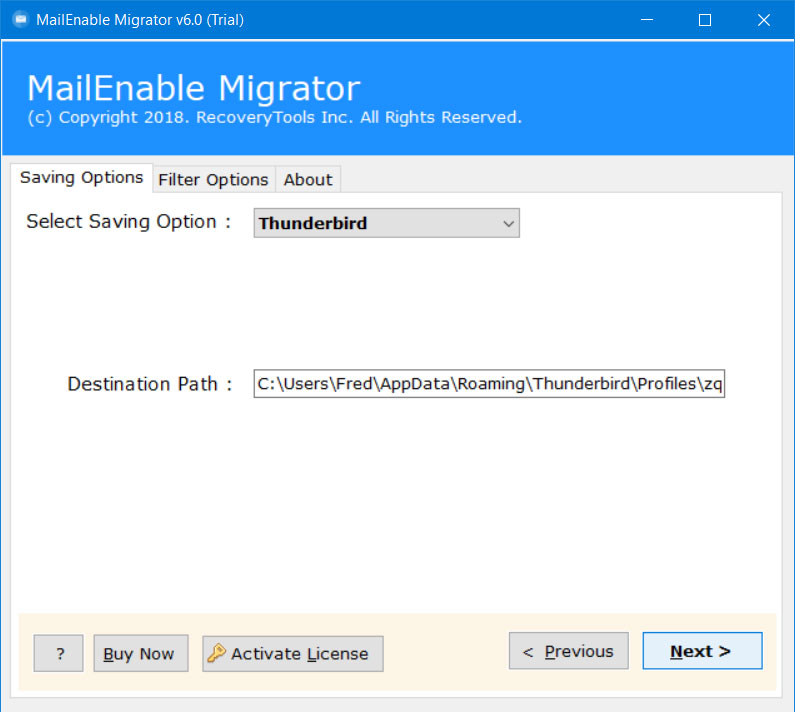 This can be done with the help of a professional toolkit i.e. RecoveryTools MailEnable Migrator. This MailEnable to Thunderbird Converter provides a direct option to import MailEnable emails, contacts, calendars into the Thunderbird account instantly & quickly. Also, the software is itself capable to identify the default Thunderbird Profile location & then copy the items from MailEnable to the Thunderbird profile path. Also, this application proves to be one of the easiest ways to transfer data from MailEnable into Thunderbird Mail for Windows PC.