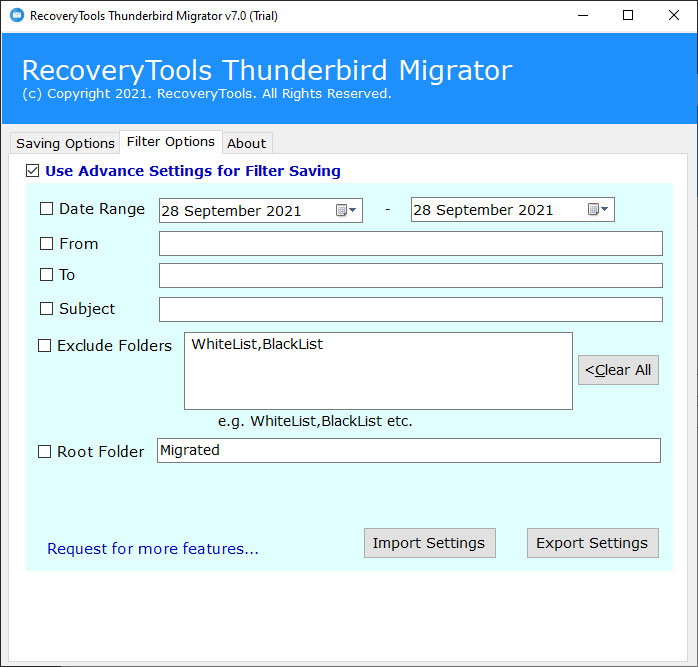 The solution offers diverse file naming choices while changing over Thunderbird messages into Webmail client. It assists the clients with saving and deal with their resultant Webmail account as per their significance. Also, the solution provides several email filters options to export only the required emails by date, time, subject, ranges, etc.