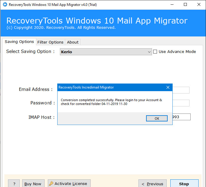 - The software creates a SavingLog.txt report which will contain all the important information related to the email server migration from Windows 10 Mail.