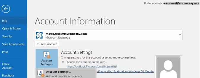 - Select the “Account Setting” >> “Account Settings” from the “Info” tab.